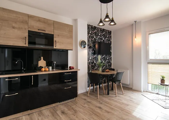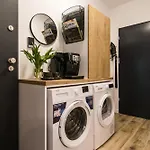 - ❓Czy w tym apartamencie znajduje się kuchnia do użytku gości?Tak, apartament wyposażony jest w pełnowymiarową kuchnię i oferuje czajnik elektryczny, lodówkę i przybory kuchenne.